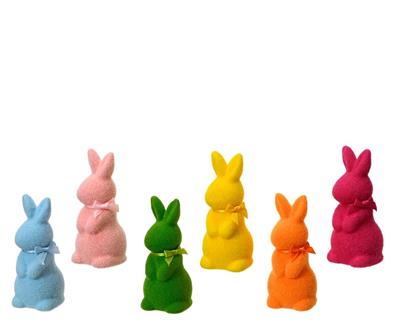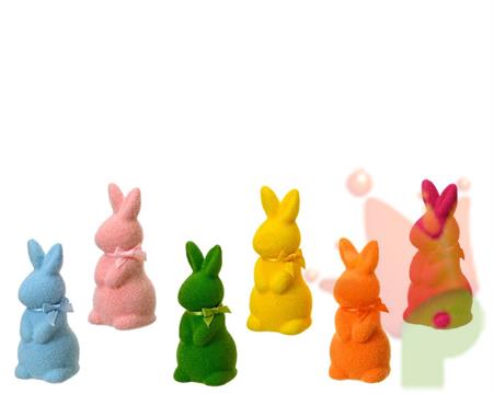 CONIGLIETTO IN SCHIUMA FLOCCATO MONOCOLORE CON FIOCCHETTO 1 PZ