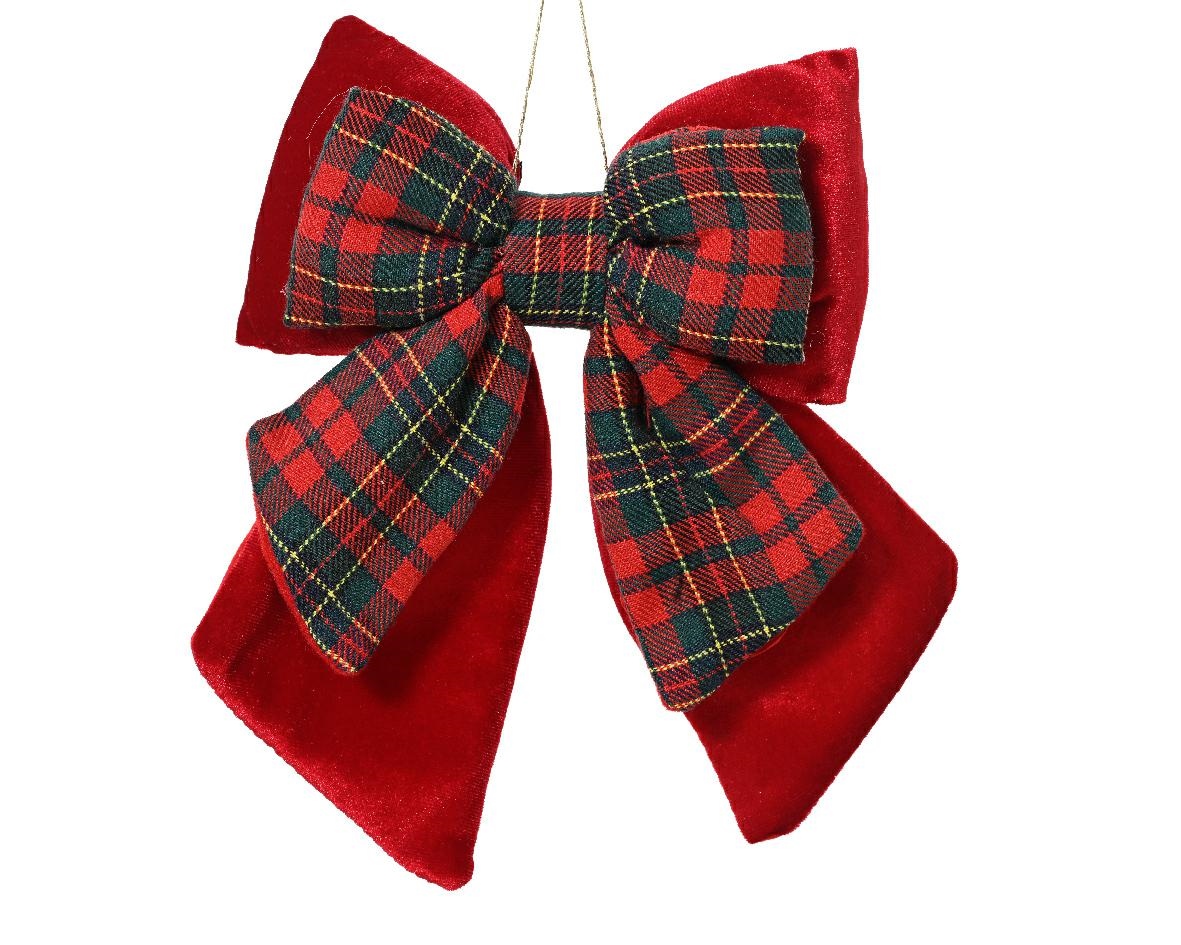 FIOCCO IN VELLUTO DI POLIESTERE ROSSO/SCOZZESE H 23X18X4,5 CM