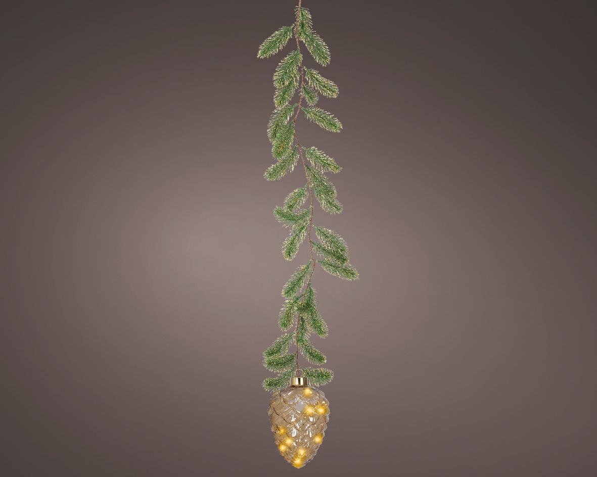 GHIRLANDA CON PIGNA LUMINOSA IN VETRO 15 MICROLED BIANCO CALDO