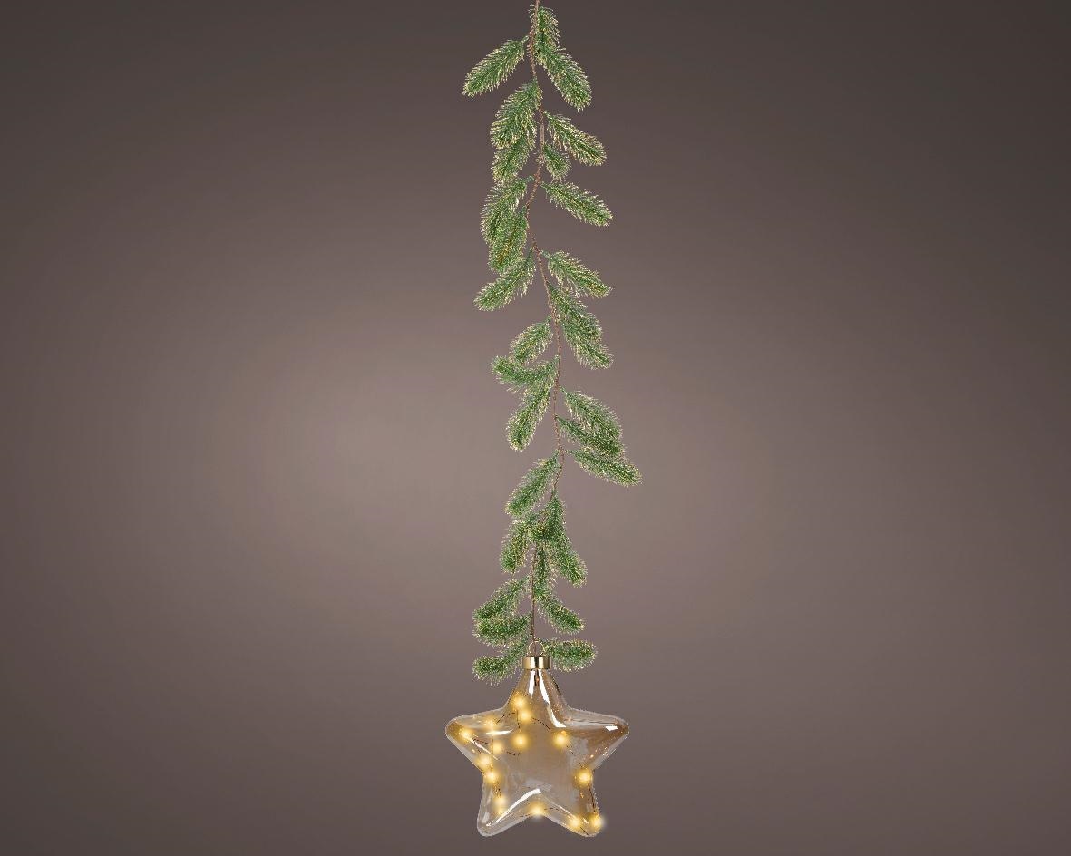 GHIRLANDA CON STELLA LUMINOSA IN VETRO 15 MICROLED BIANCO CALDO