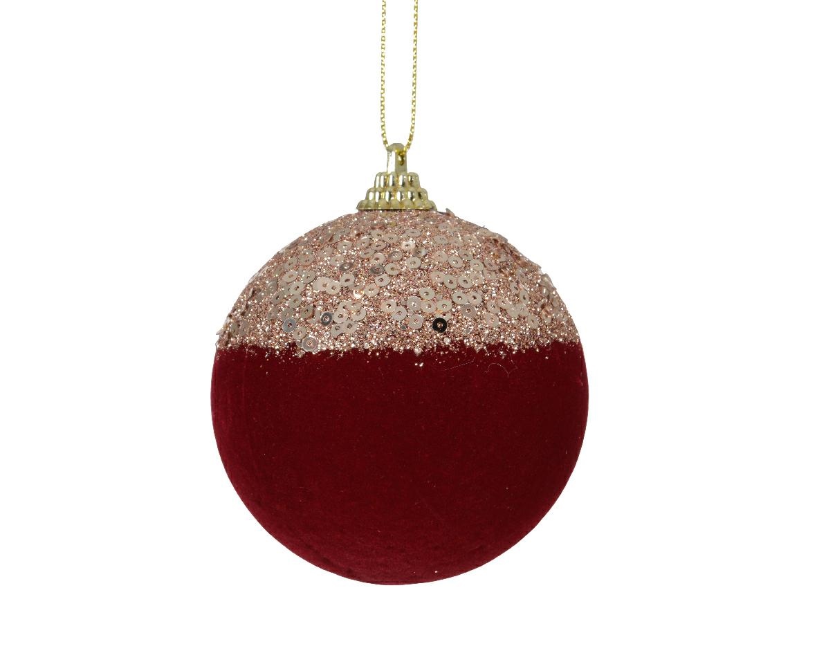 PALLINA DI NATALE BORDEAUX CON GLITTER E LUSTRINI 8 CM