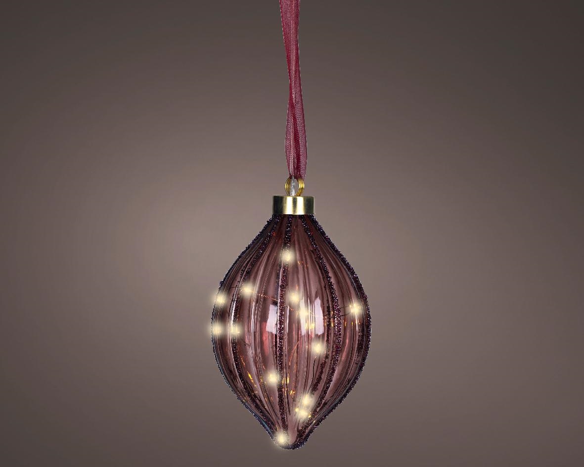 PALLINA DI NATALE FORMA OLIVA LUMINOSA IN VETRO BORDEAUX 40 LED