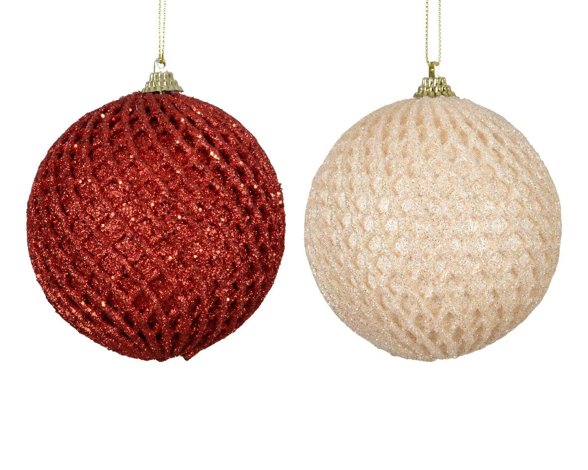 PALLINA DI NATALE IN SCHIUMA GLITTER ROSSO/AVORIO 10 CM 1 PZ ASS