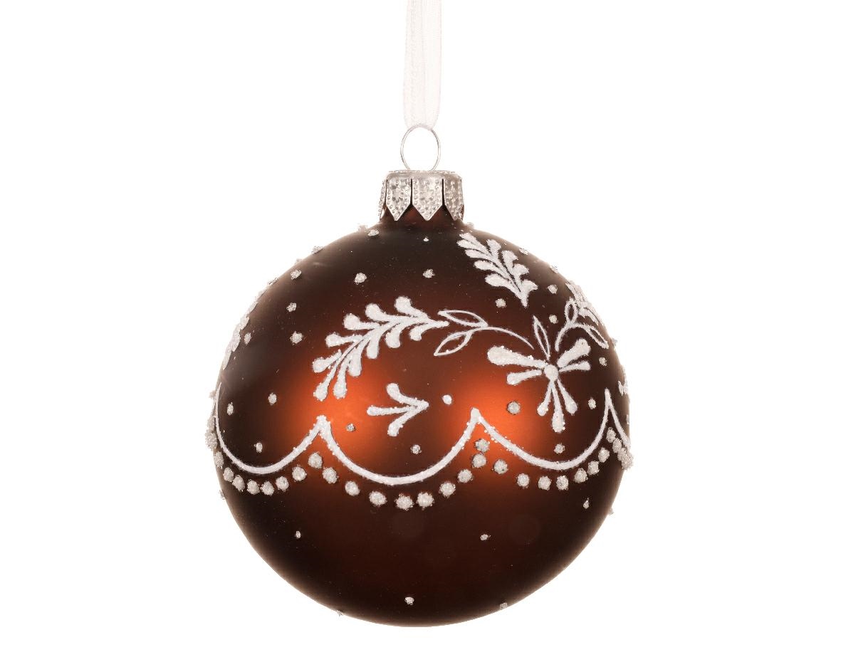 PALLINA DI NATALE IN VETRO MARRONE ESPRESSO CON DECORI 8 CM