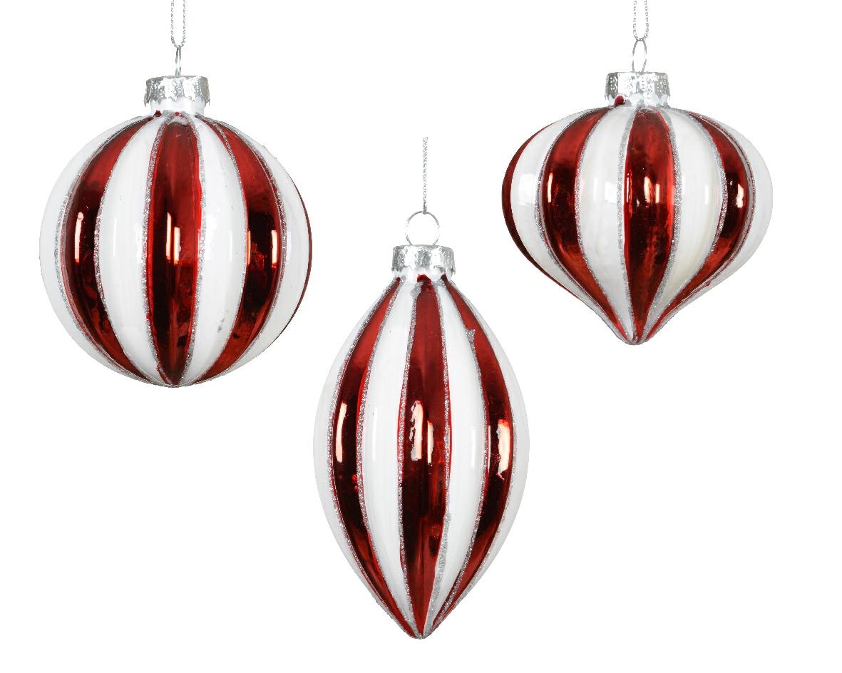 PALLINA DI NATALE IN VETRO ROSSO E BIANCO A STRISCE 8 CM