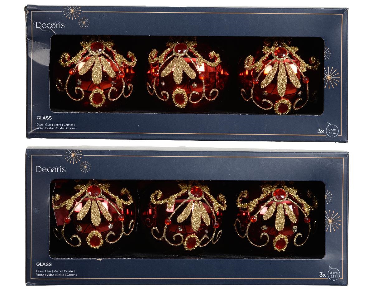 PALLINA IN VETRO BORDEAUX GLITTER ORO 8 CM