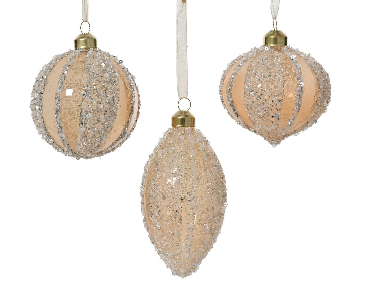 PALLINA IN VETRO TRASPARENTE ROSA CON GLITTER ARGENTO 8 CM 1 PZ