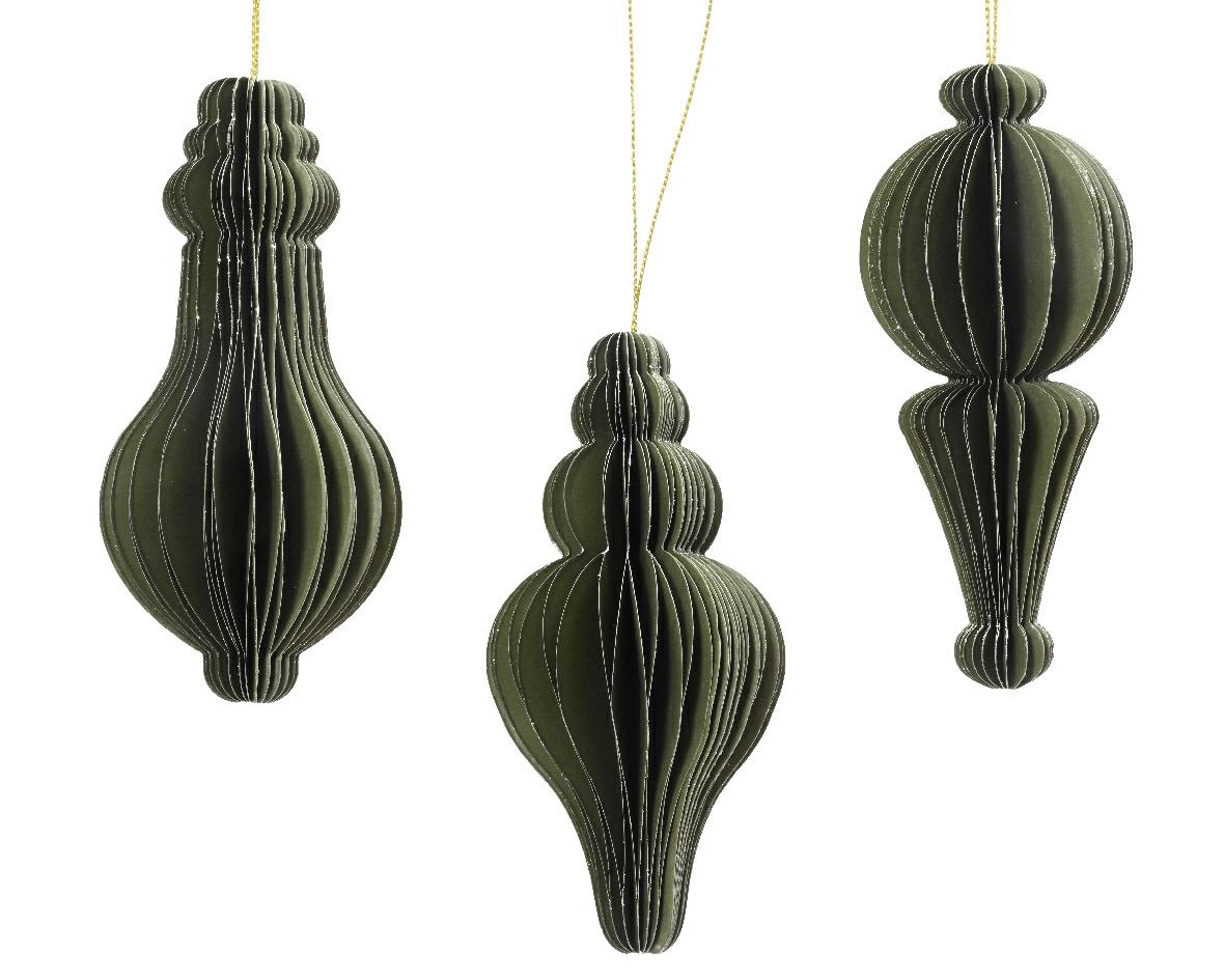 PENDENTE NATALIZIO IN CARTA NIDO D'APE VERDE CON GLITTER