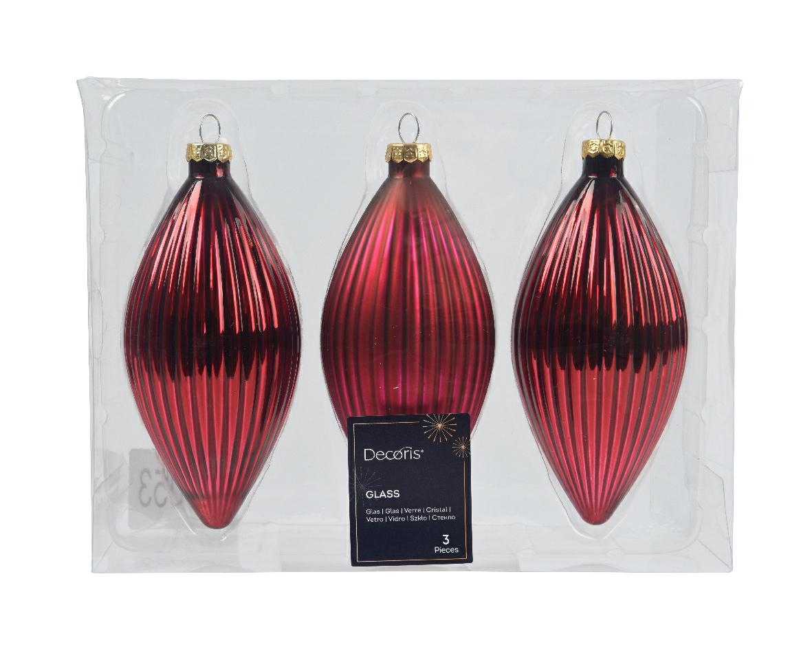 PENDENTI NATALIZI IN VETRO FORMA OLIVA BORDEAUX 13 CM 3 PZ