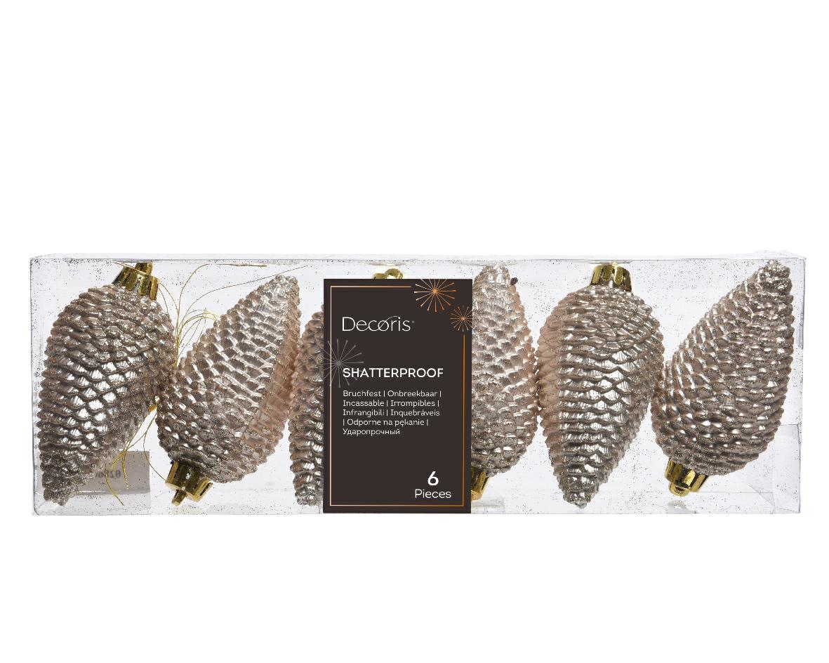 PENDENTI PER ALBERO DI NATALE PIGNE PERLA GLITTER BOX DA 6 PZ 8