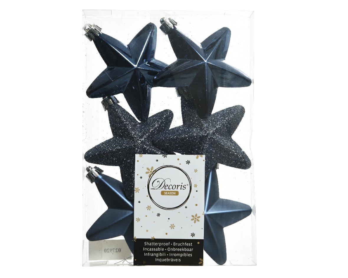 PENDENTI STELLE BLU OPACHE GLITTER LUCIDE 6 PZ 7,5 CM