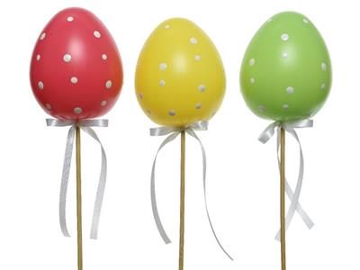 PICK CON UOVO DI PASQUA DECORATO 15CM COLORI ASSORTITI