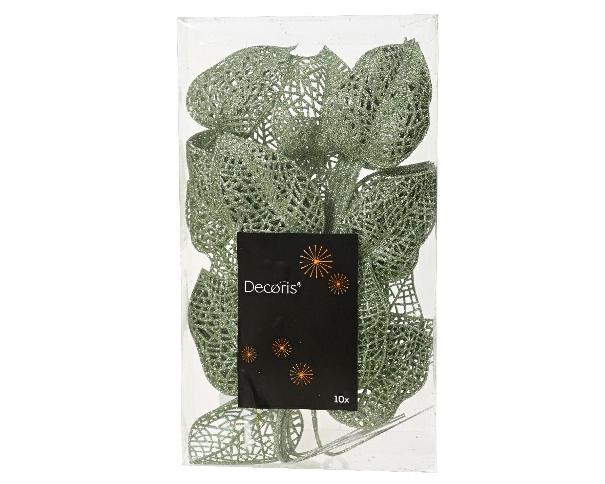 RAMETTO CON FOGLIE VERDE MENTA GLITTER 10 PZ H.36X16X2 CM