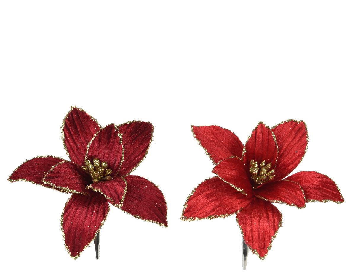 STELLA DI NATALE CON CLIP IN VELLUTO ROSSO/ BORDEAUX 13XH.5 CM A